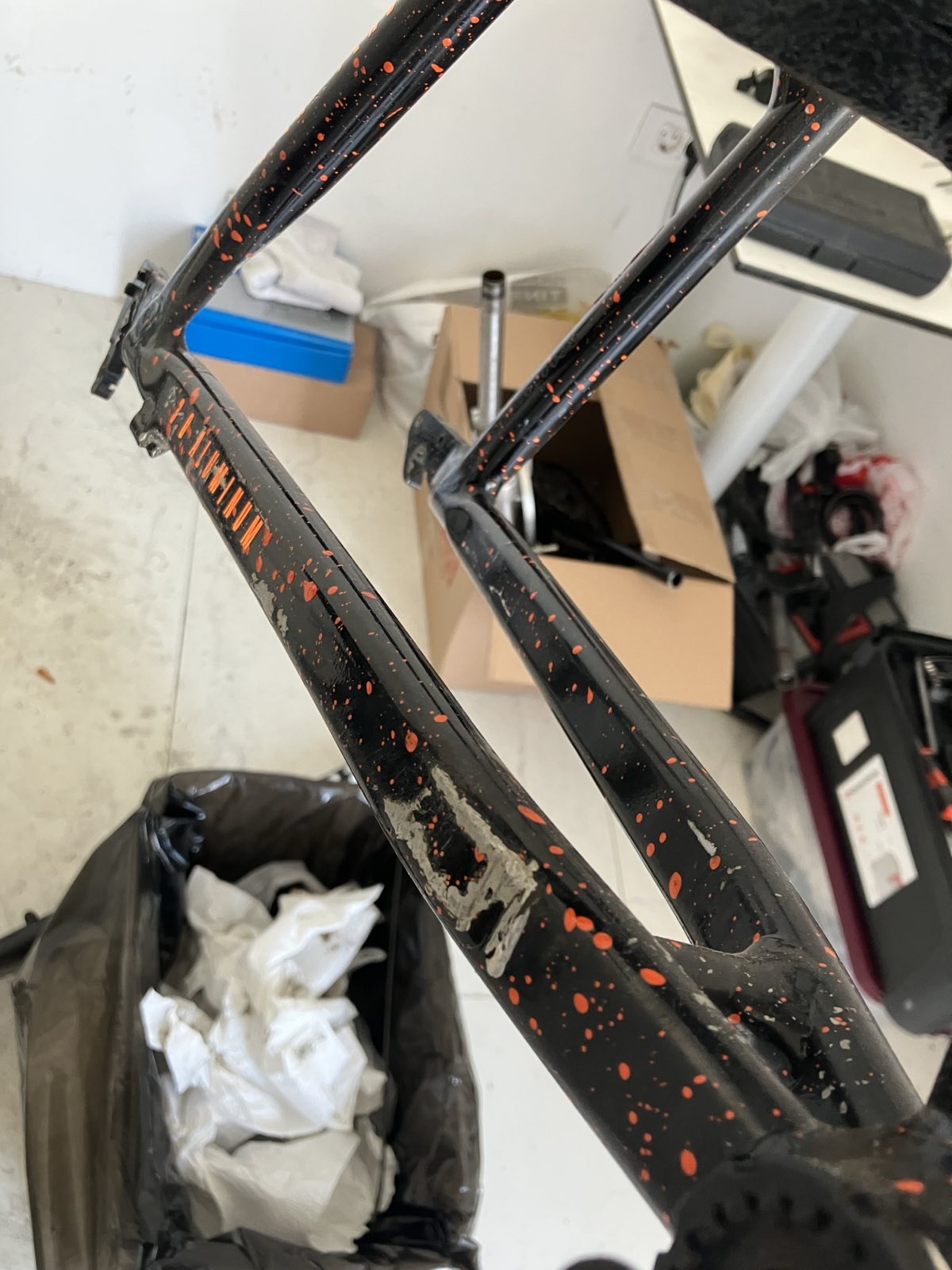 The frame is in very good shape, some paint chips here and there and the chainstay getting the worse of it. Very happy with the frame atm. Next will be removing most of the stickers, correcting the paint and polishing. Same for the cranks and whatever else makes sense to touch up/polish.